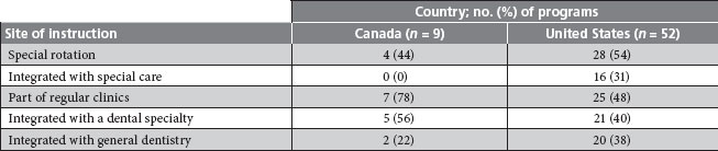 Table 2 Sites of clinical teaching of geriatric dentistry in Canada and the United States, 1998a