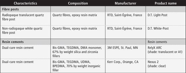Two dual-cured resin cements (RelyX ARC and Nexus 2) and 2 types of fibre posts (D.T. Light-Post and D.T. White-Post) were used in this study (Table 1).