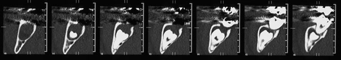 Dentigerous cysts may enlarge causing extensive bone resorption and even pathologic fracture.6 The greater the size of the cyst, the higher the risk of neurologic damage caused by trauma during and after surgical removal and of mandibular fracture resulting from the postoperative bone defect.7,8 Moreover, the removal of large cysts can lead to a severe infrabony defect at the root surface of adjacent teeth, jeopardizing their long-term periodontal health.