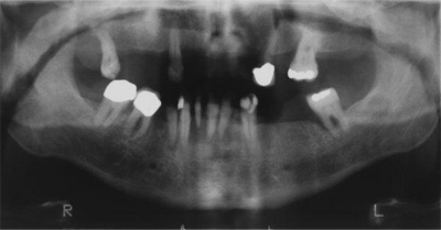 Figure 2: Orthopantomogram showing generalized bone loss with no obvious intraosseous pathology.